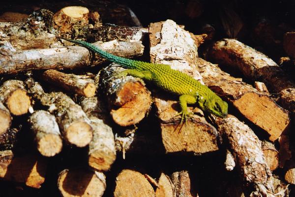 Las lagartijas Sceloporus malachiticus (aquí un macho) son convecinos permanentes de nuestra casita. Así pudimos observar de cerca su vida familiar durante varios años.