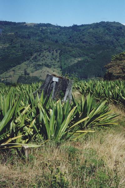Am Camino Estrella, wenige Kilometer von EL ZORRITO entfernt.Auch hier gab es noch vor wenigen Jahrzehnten dichten Eichenwald, wie der fünf Meter hohe Stubben bezeugt. Doch der Wald musste dem Sisal-Anbau weichen.