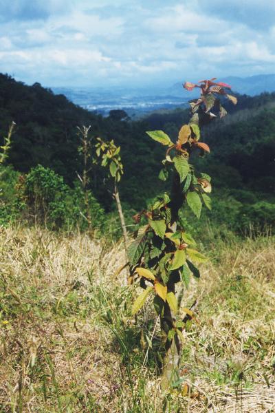 Einige Baumarten sind in der Lage aus mehr oder weniger großen Holzstücken schnell und zuverlässig auszutreiben. Wir experimentierten mit etwa 1,5m langen Stecklingen von Saurauia montana, Verbesina oerstediana und Viburnum venustum. Großstecklinge scheinen eine Erfolg versprechende Methode zur Aufforstung ungünstiger Standorte zu sein.