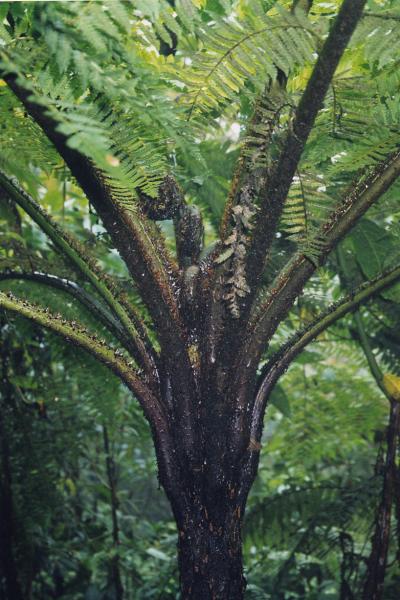 Cyathea onusta ist ein auf EL ZORRITO häufiger Baumfarn. Bisher haben wir 9 Farne von Baumgröße in der Projektfläche identifiziert.
